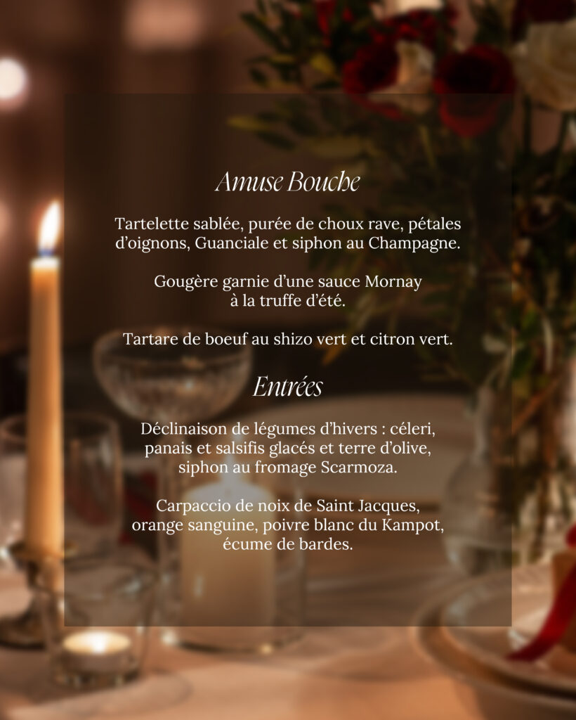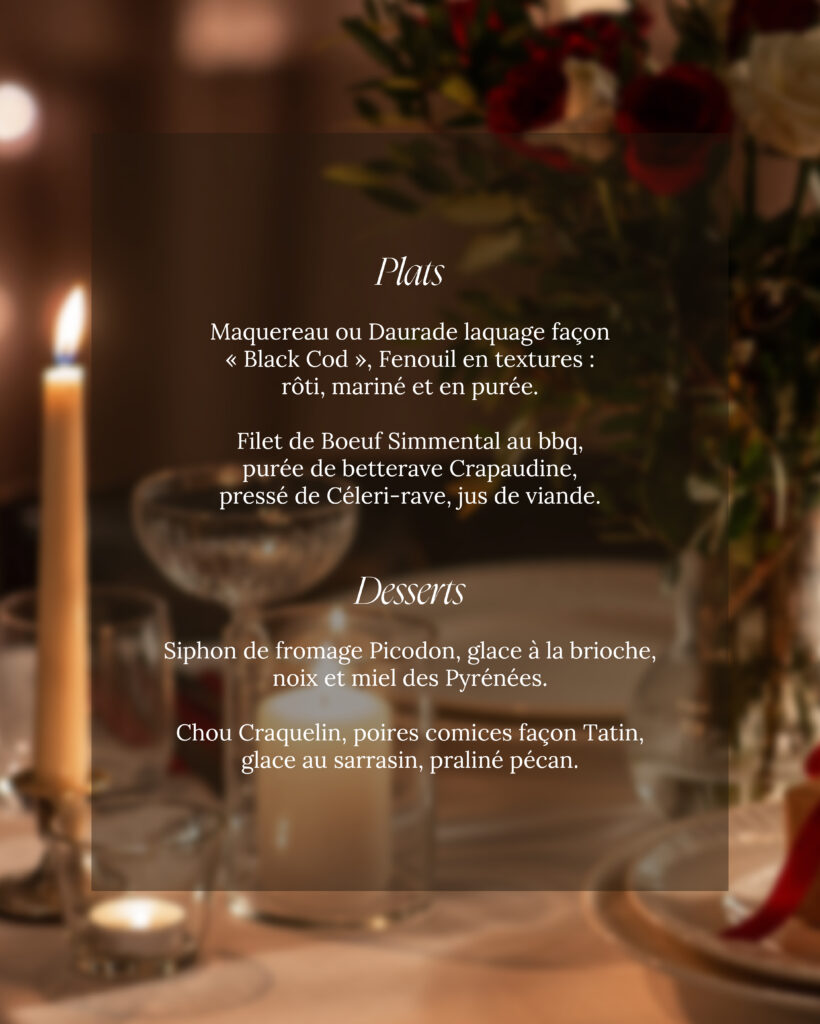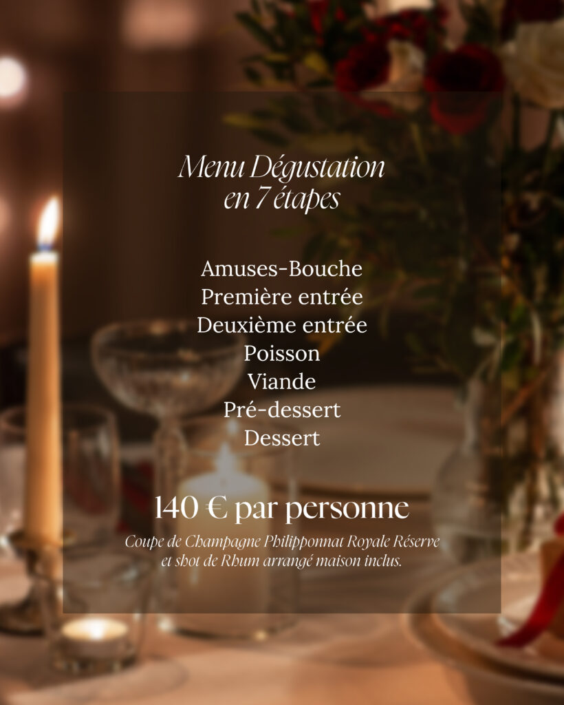 Le menu Saint-Valentin est proposé exclusivement pour la soirée du 14 février.